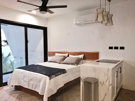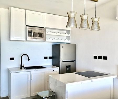 -Dos apartamentos separados tipo estudio, con cocina americana totalmente vestida y equipada, terraza con vista al mar , baño privado, espacio de lavadora/secadora.