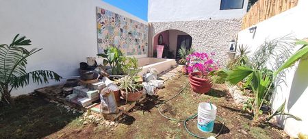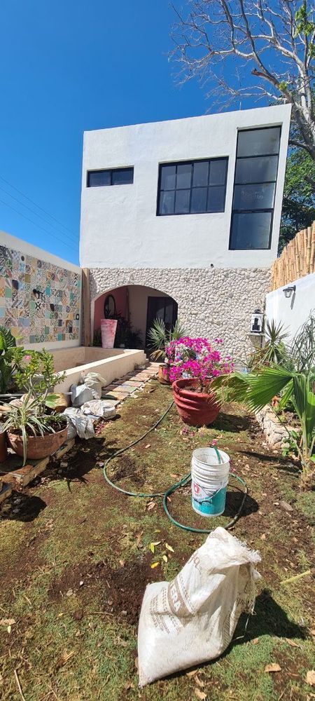 Cuenta con sala recibidor, cocina equipada y amueblada, estancia y baño completo, con pisos altos, alberca, asador y jardín decorado.