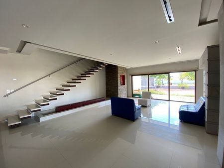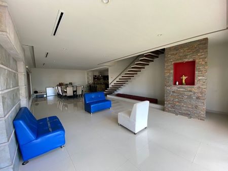 •Características: Acabados finos, nicho interior y nicho exterior, muros exteriores de cantera y piedra laja, muros interiores de cantera, porcelanato importado, duela de madera, barra de granito, escaleras metálicas empotrados en muro con recubrimiento de loseta de mármol, estructura general de acero, ventanales de cristal en sala, comedor y recamaras, granito y cuarzo en baños, clima integral.