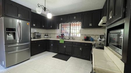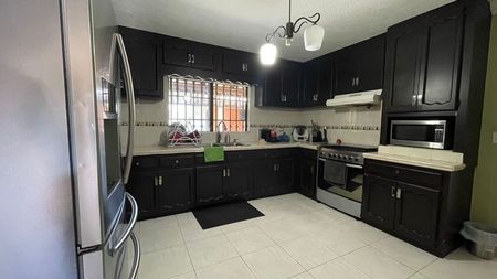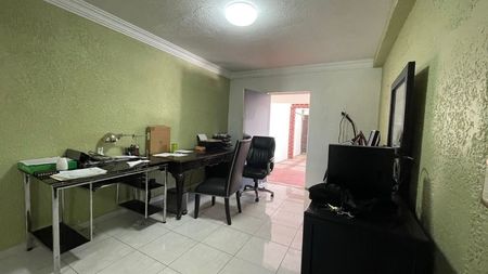 Cuenta con una pequeña oficina con baño completo y acceso independiente por la cochera conectando con el patio trasero (se puede utilizar como cuarto de visitas).