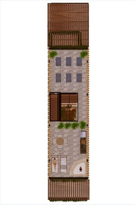 3 recámaras, 3.5 baños y 2 estacionamientos, amplia estancia, terraza, pequeño jardín interior, balcón, roofgarden privado y área de lavado ocupando un total de 301.82m2.