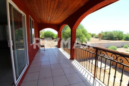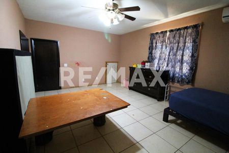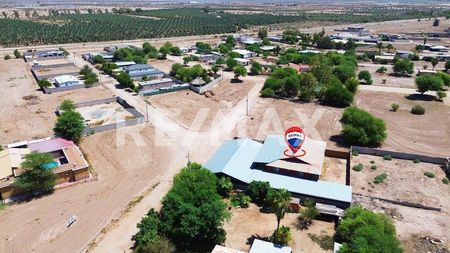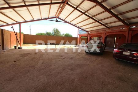 Cuenta con recibidor, sala, comedor, cocina, cuarto de servicio, baño completo, recámara con clóset y escaleras. En el exterior, la casa dispone de cochera cubierta para 2 autos, estacionamiento techado para 10 autos, y amplios patios en la parte frontal, posterior y lateral.