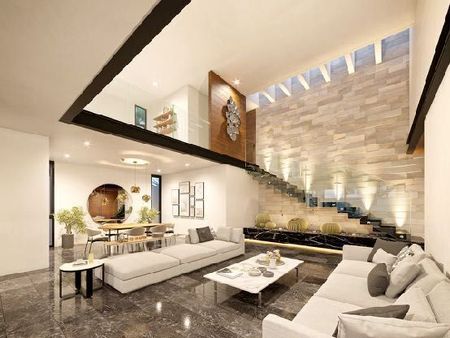 En la planta alta, cuatro recámaras te ofrecen privacidad y comodidad, cada una con su baño completo y closets vestidor en madera de Parota. La recámara principal destaca con su baño completo y un vestidor gigante, cumpliendo con todas tus expectativas de lujo y confort. Los acabados en madera de Parota en puertas y closets agregan calidez y estilo a cada ambiente. Los canceles para baño de cristal templado brindan un toque moderno y elegante. Una sala de TV será tu rincón de entretenimiento.