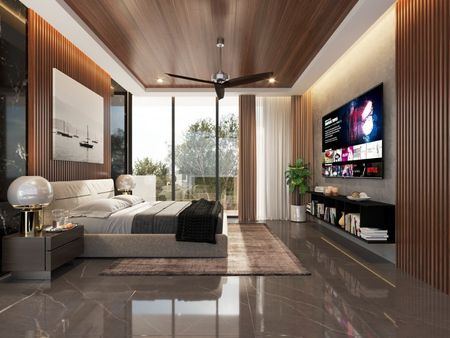 - Recámara principal con balcón en forma de L y vista al lago, amplio clóset vestidor y baño completo