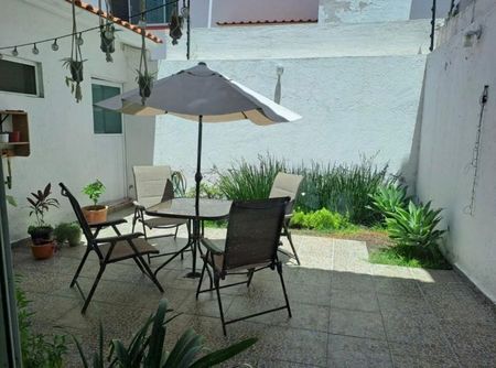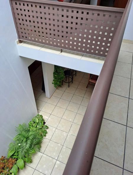 Sala, Comedor, medio baño, Cocina con barra, Amplia Alacena, Closet abajo de la escalera, Closet en el comedor, Patio trasero con jardín, Oficina con entrada independiente desde la calle al patio trasero, Área de lavado y escalera Marina al techo.