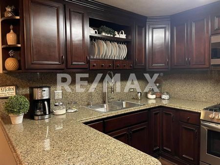 La casa en venta es una propiedad de dos niveles ubicada en una esquina. Cuenta con cuatro habitaciones y 4.5 baños, lo que la hace perfecta para una familia grande o para aquellos que necesitan espacio adicional para invitados o para oficinas en el hogar. La cocina es impresionante, con cubiertas de granito y madera alder, electrodomésticos hechos a medida y espacio para un comedor. También cuenta con una sala, espacio para oficina. Los pisos son laminados y cuentan con shutters de madera hechos a medida, lo que agrega un toque de elegancia y calidez a la propiedad. Además, la casa tiene refrigeración central en la mayoría de las habitaciones y minisplits en las dos restantes, lo que la hace perfecta para mantener una temperatura agradable durante todo el año. También cuenta con gas por tubería, lo que hace que sea una propiedad fácil de mantener. La casa también incluye una antesala con chimenea, un cuarto de lavar, un pequeño almacén exterior para almacenar herramientas y una amplia cochera para cuatro autos. El exterior cuenta con una zona de asador techado con baño completo, ideal para pasar tiempo con amigos y familiares en un ambiente cómodo y relajado. Esta casa es perfecta para aquellos que buscan un hogar amplio, cómodo y elegante con todas las comodidades modernas y en una ubicación privilegiada en una esquina.