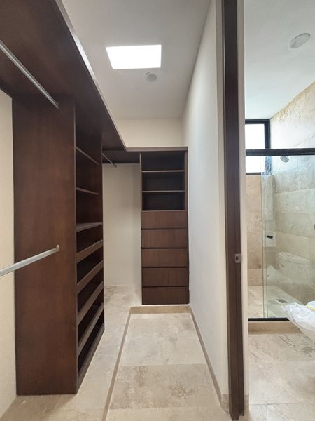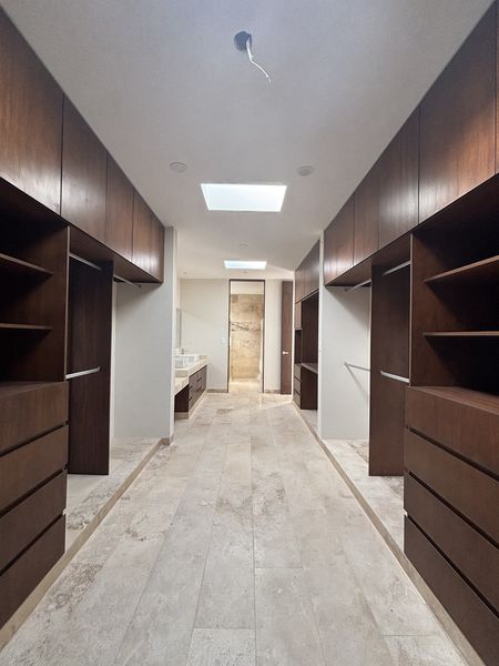 Equipamiento: Carpinterías en closets, cancelería en baños, mosquiteros, carpintería completa en cocina, puertas reforzadas de carpintería, jardín y sistema de riego automatico, piscina con preparación para filtro, boiler, presurizador, tanque estacionario, estufa, campana y tarja, puertas en pasillos laterales, preparación para instalación paneles.
