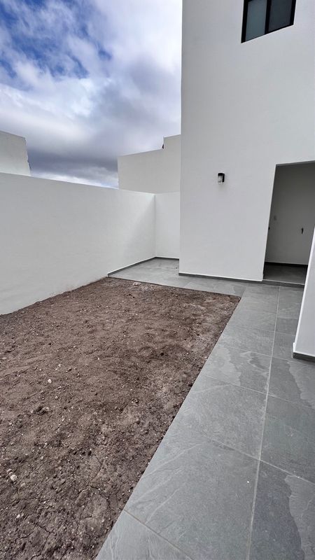 Sala, comedor, 1/2 baño, cocina equipada con isla, cuarto de lavado techado, jardín y cochera para 2 autos