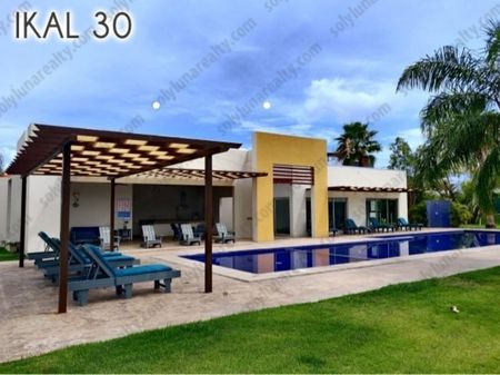 IKAL 30 Privada Ikal – Nuevo Vallarta Residencia en el Fraccionamiento Ikal Nuevo Vallarta una de las mejores ubicaciones del puerto a un costado del campo de Golf " El Tigre", en el ingreso a Nuevo Vallarta, a minutos del próximo Parque temático Grupo VIDANTA , playa, centros comerciales, hospitales, clubs de playa, restaurantes, escuelas, Universidades y 10 minutos del Aeropuerto., este fraccionamiento cuenta con todos los servicios ocultos, sistema de recolección de basura todos los días, con alberca y terraza de usos múltiples. Grandes espacios jardineados y paseo peatonal en interior, el Fraccionamiento es muy tranquilo y seguro, tiene centros comerciales cerca y la playa a 10 min Los amplios espacios de esta distribución da una sensación de amplitud y tranquilidad, la propiedad se encuentra construida en un terreno de 224 m2, cuenta con 2 niveles y terraza con la siguiente distribución interior: Planta Baja: Sala Comedor, Cocina Integral. Barra desayunador de granito. Área de Servicios. Patio Trasero con Área de Lavandería. Recamara, Baño completo. Alberca Planta Alta: Distribuidor central. 2 Recamaras con Closet, Baño completo, Equipo de A/C, Ventana amplia y Preparación para ventilador de techo. 1 Recamara con Walking Closet, Baño completo, Equipo de A/C, Ventana amplia y Preparación para ventilador de techo.