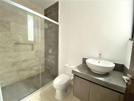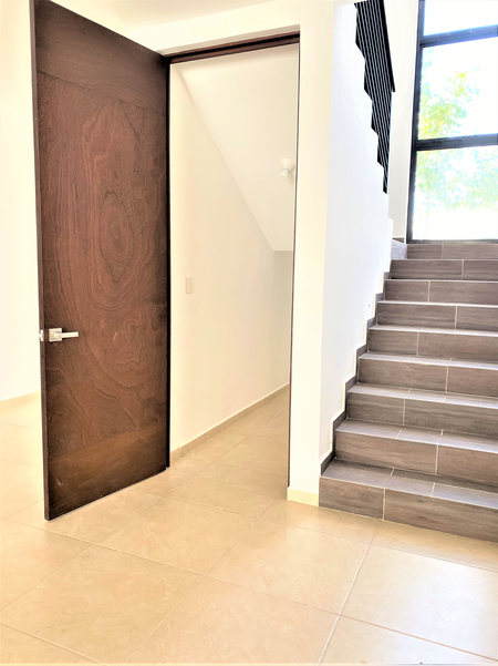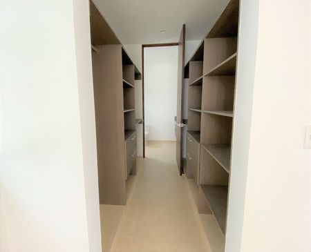 Recámara principal con vestidor con carpintería incluida y baño completo.