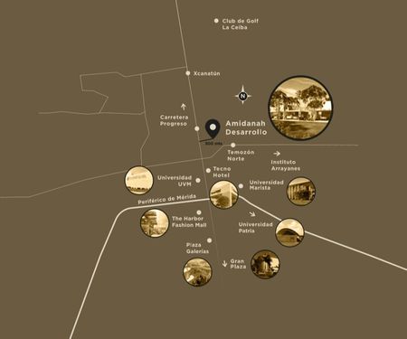 Con una ubicación privilegiada, al norte de la ciudad, estarás a menos de 10 minutos de la Universidad Marista, Modelo y Anáhuac Mayab, llegar a plazas como La Isla, The Harbor y Altabrisa así como el Hospital El Faro o StarMédica te tomará unos 15 minutos, además, se encuentra a unas cuadras del Periférico de Mérida con fácil acceso a desarrollos tanto comerciales como residenciales y a la Carretera a Progreso desde donde en menos de 30 minutos podrás estar disfrutando de las hermosas costas yucatecas, definitivamente la mejor elección para tu nuevo hogar.