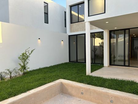 ¡Tu nuevo hogar te espera en Temozón Norte! Hermosa casa con amplios espacios, cocina equipada, jardín, alberca con 3 recámaras y 3 baños con clóset vestidor en venta en exclusiva privada con vigilancia 24/7.