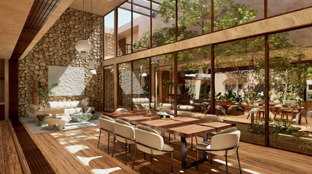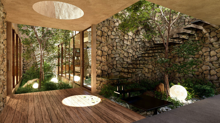 - Andador lineal que conecta cada sección de la propiedad acompañado de un jardín paralelo.