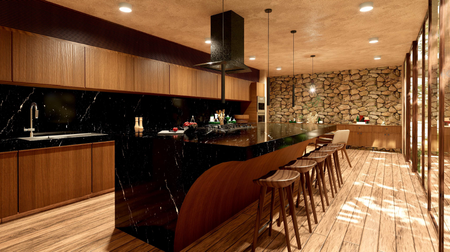- Cocina con isla y espacio para desayunador, alacena walk in y vista al primer patio.