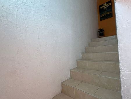 Cuenta con 3 recámaras una de ellas en planta baja, principal con vestidor, 2 baños completos, sala comedor, medio baño para visitas, cocina integral con barra desayunadora, área de estudio, patio y garage para 1 auto con portón eléctrico