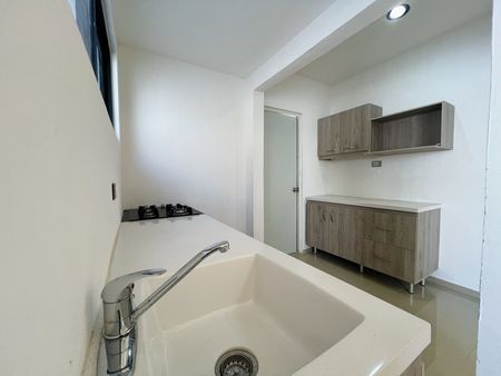 Cocina equipada con tarja, parrilla y carpintería inferior y superior