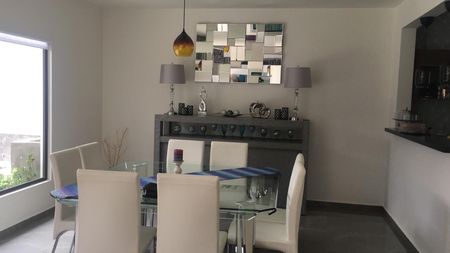 Consta en PB de sala comedor, medio baño de visitas, cocina cuarto de lavado cuarto de servicio, family room (ampliacion) y area de asador. PA tres recamaras la principal con baño y vestidor, las secundarias comparten baño completo y área de tv.