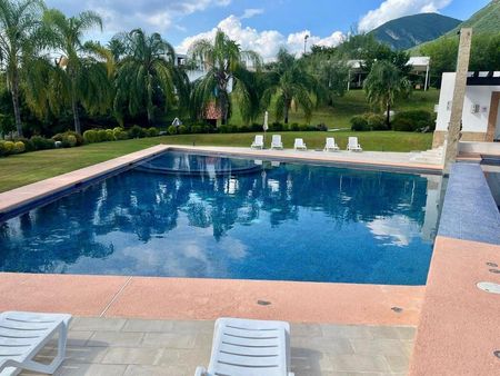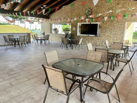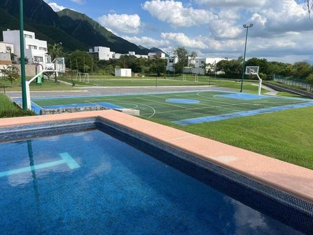 Club social con Jardines, palapa, terrazas, alberca, canchas basketball, futbol, baños, oficinas.