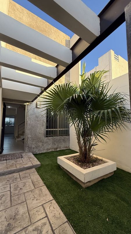 La casa se encuentra sobre una Av de gran tamaño al frente de la casa. Podemos encontrar una bonita fachada con cochera techada para dos vehículos y portón eléctrico al interior de la casa. Encontramos sala comedor, separadas donde la sala esa doble altura, cocina, totalmente equipada con barra, desayunador, medio baño de visitas una recámara con clóset y baño propio. En la parte de atrás, contamos con una terraza, techada 1 a de lavado, techado y una alberca de buen tamaño. Seguido en planta alta, encontramos dos recámaras, cada una, con su propio baño y la principal cuenta con clóset vestidor.