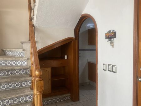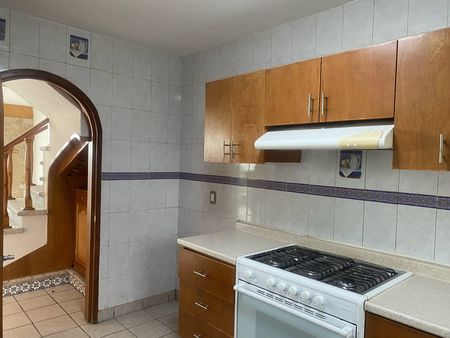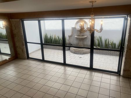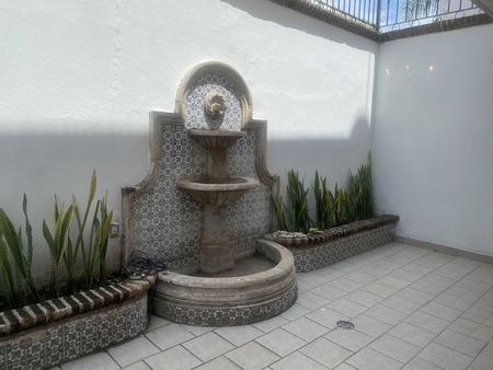 Con una cocina integral, sala comedor y una terraza con fuente en la planta baja, así como tres recámaras en la segunda planta, incluyendo una principal con baño y vestidor.
