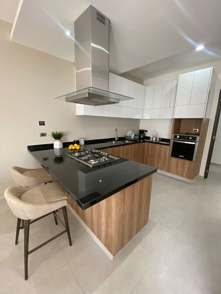 cocina equipada con acabado de mdf en alto brillo en carpintería