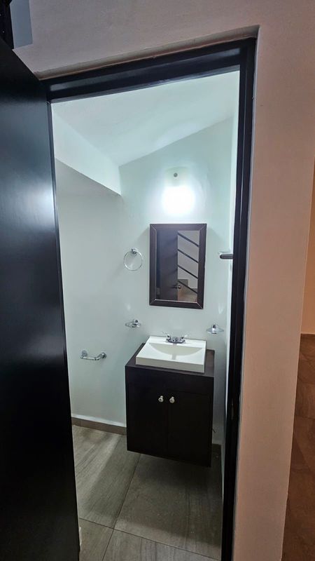 Comparten baño con inodoro de 1 pieza, lavabo con meseta de cantera y regadera con llave mezcladora