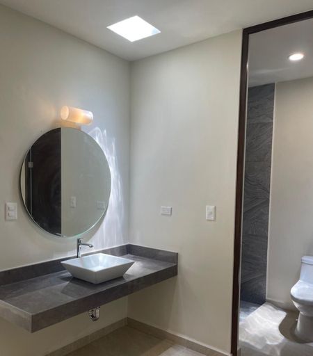 • Equipamiento: Carpintería en cocina con gavetas inferiores y superiores, meseta de granito, fijo de cristal templado en baños, piso interior de 45 x 90, alberca, parrilla de gas con 5 quemadores, mesetas de mármol en baños, acabados en muros interiores de yeso, bomba presurizadora.