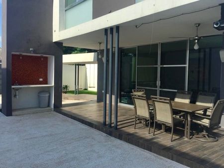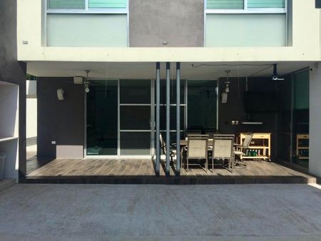 Planta Baja: cochera 2 autos, jardín, alberca, sala, comedor, cocina, estudio, medio baño, área de lavado y planchado, bodega, área de tendido.
