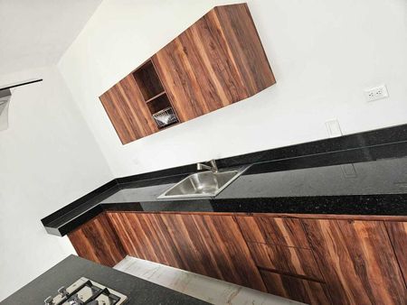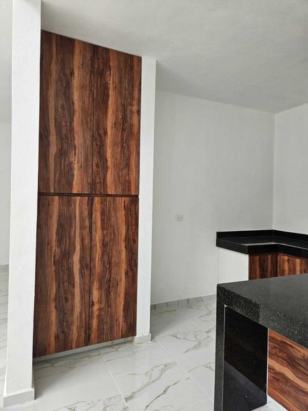 Carpintería en cocina con MDF tratado: Incluye gavetas inferiores, superiores, espacio de alacena e isla