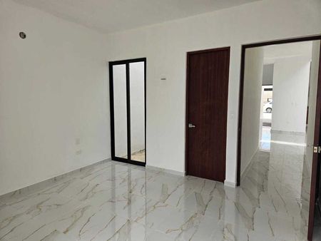 Recamara secundaria con baño completo y espacio de closet, con cancel corredizo para acceso a jardin trasero