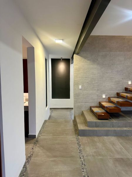 PLANTA BAJA: AMPLIA ESTANCIA – COMEDOR/ DESPACHO ó RECAMARA CON BAÑO COMPLETO Y CLOSET/ AREA DE LAVADO/ JARDIN POSTERIOR/ COCINA INTEGRAL ALTO BRILLO INCLUYE BARRA DE CUARZO - COCHERA 2 o 3 AUTOS, PLANTA ALTA: HERMOSO MURO DIVISORIO/ ESCALERA EN DOS SEGMENTOS CON TERMINADOS EN MADERA/ TRES RECAMARAS CON BAÑO COMPLETO Y CLOSETS, LA PRINCIPAL CON VESTIDOR DE GRAN TAMAÑO, AMPLIA SALA DE T.V. A DOBLE ALTURA/ GRAN ILUMINACION NATURAL, INCLUYE DIVERSOS DOMOS.
