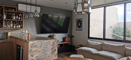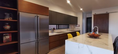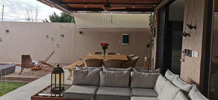 Gran oportunidad vive con el lujo que mereces, casa que aporta elegancia, estilo de vida y todas las amenidades que tu familia necesita en un ambiente completamente privado.Los acabados de esta casa son realmente increíbles nos ofrece altura y media, closet de blancos y áreas de guardado para disfrutar de áreas en armonia, disfruta pisos de mármol negro que dan una personalidad en tonos gris y delgadas vetas blancas, todo esto suma elegancia y calidez. Ofrece una escalera volada con acabados de madera tzalam que da cubierta a una jardinera interior que da ese espacio de contacto con la naturaleza, en la combinación de materiales de alta calidad no podemos dejar de resaltar el muro que te da la bienvenida y te guía por la propiedad con un acabado de piedra natural, además de todo esto, podemos disfrutar de dos áreas de amenidad tenemos una sala bar equipada con instalación de sonido, iluminación, mármol y madera, que nos conecta al área de terraza con pergolado, una zona ideal para pasar mucho tiempo en familia y con amigos disfrutar de este espacio con alberca climatizada y jardín con el tamaño perfecto para una gran familia.El sistema domótico es uno de los pilares fundamentales de esta casa. Brindando una experiencia de vida inteligente y conveniente. La cocina cerrada con vista a la terraza es un verdadero sueño para los amantes de la gastronomía. Está equipada con electrodomésticos de alta gama marca smeg, cafetera integrada, alacenas con chapa de encino, muebles de diseño personalizado. Además, cuenta con una isla central donde se pueden realizar preparaciones culinarias y servir comidas en un entorno elegante.En planta alta este hogar cuenta con terraza que nos ofrece luz natural y espacio para disfrutar la tarde. Cuenta con 4 habitaciones con pisos de madera, equipadas cada una con área de vestidor, los baños son espacios de relajación y bienestar con acabados de lujo con mesetas y regaderas en mármol, espejos de vanidad y muebles de baño en madera, cada habitación incluye aire acondicionado. La habitación principal además tiene excelente vista, espacio para salita y un vestidor de ensueño, espacio para cada necesidad y lavabo doble con espejo de vanidad, área húmeda y WC, separadas con excelentes acabados e iluminación natural. Además de un área para disfrutar en familia sala de televisión equipada con área de escritorios y mueble de entretenimiento a medida.La estratégica ubicación de esta propiedad al encontrarse en una zona de madurez Juriquilla Querétaro nos permite tener todos los servicios, escuelas de todos los niveles académicos, centros comerciales, Restaurantes, bares y centros de conveniencia, ademas de zona para salir a caminar y a unas cuadras del campo de golf. En resumen, una casa con sistema domótico y acabados de lujo es una obra maestra arquitectónica que combina la belleza estética con la tecnología más avanzada. Cada detalle está cuidadosamente pensado para ofrecer una experiencia de vida exclusiva y confortable. Su equipamiento de Paneles solares eficientiza la vida diaria al igual el circuito cerrado, los sensores y cerca electrificada que ofrecen seguridad.¡Vive en una casa que lo tiene todo! Agenda una cita.