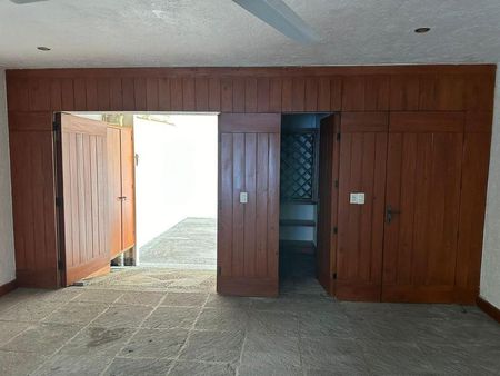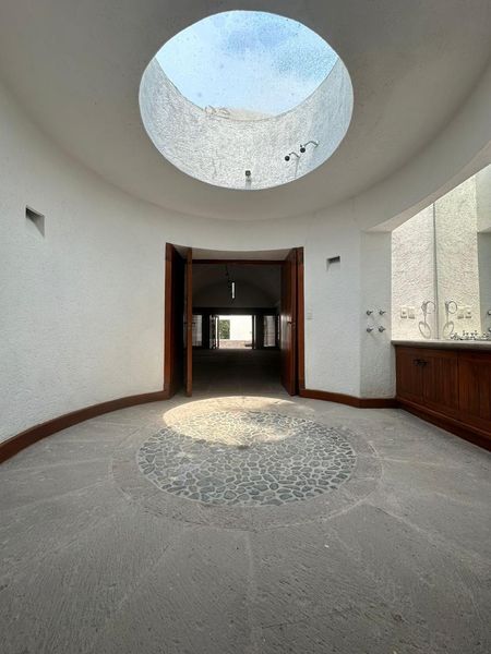 En el segundo nivel recamara principal con walking closet. baño, jacuzzi y terraza, dos recamaras secundarias cada una con vestidor, baño completo y balcón, techos con vigas de madera, estacionamiento para seis autos, dos de ellos techados, cisterna con hidroneumático, tanque de gas estacionario.