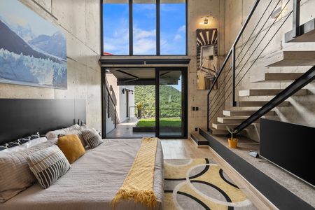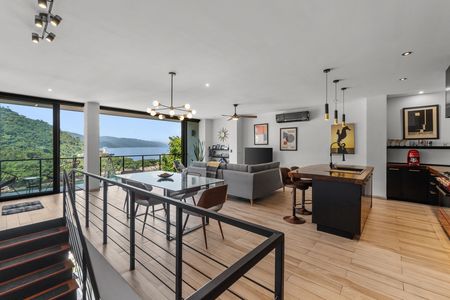 En lo alto de las verdes colinas de Lomas de Mismaloya, Casa Equilibrio se alza como una obra arquitectónica única, fusionando la esencia del Bauhaus con toques de diseño industrial y modernismo de mediados de siglo. Desde cada rincón, sus amplios ventanales enmarcan postales vivas del océano Pacífico, la selva tropical y las montañas que abrazan la bahía.