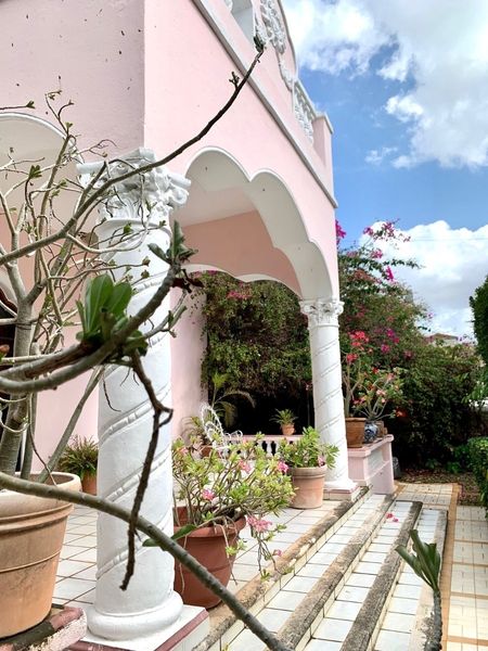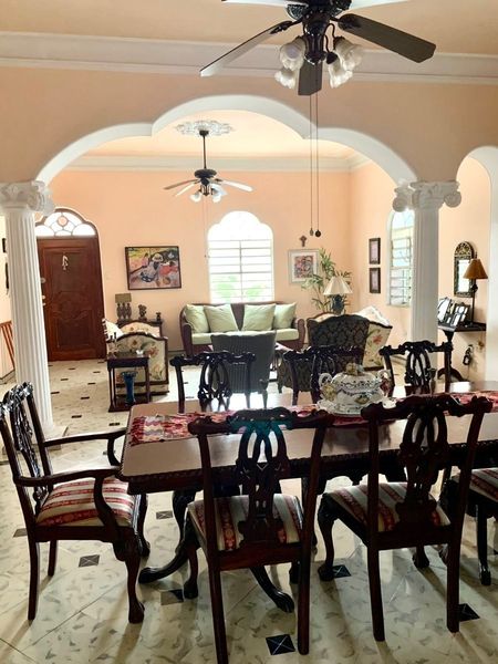 La fachada es única , hermosa e imponente que lleva a través de un ajardinado porche de entrada a una fresca terraza exterior rodeada de bugambilias ; entrando a la casa se encuentra un área muy amplia de sala y comedor, un antecomedor y cocina con amplia alacena , un área de lavandería y estacionamiento techado para 2 automóviles.