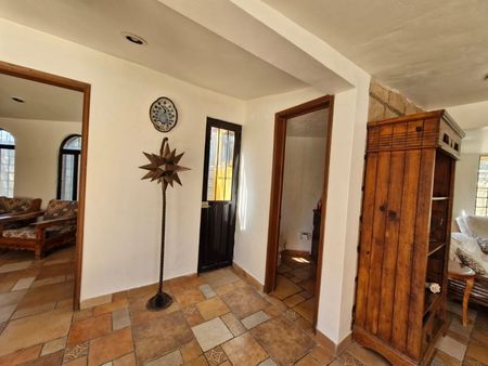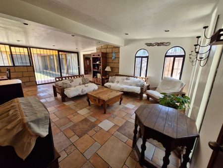 Casa muy amplia estilo campestre, de un piso, lo que la hace muy cómoda, rodeada de jardín, de 3 recámaras y muy iluminada, para remodelar y con mucho potencial para agrandarse