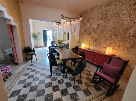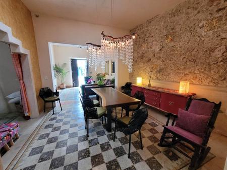 Preciosa casa estilo colonial recientemente restaurada en el centro de Merida. Totalmente remodelada con el más exquisito gusto. Manteniendo detalles como puertas, pisos y muebles originales de cedro. Acondicionada con equipamiento y tecnología actual sin perder los detalles coloniales originales de la casa. La casa tiene muros altos y frescos, igual que aire acondicionado en todas las habitaciones..