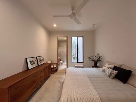 Cada una de las viviendas, a pesar de ser distintas, comparten las mismas intenciones de intimidad, calidez y materialidad en acabados artesanales a base de cemento.