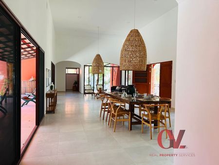 Esta casa estilo hacienda definitivamente es hermosa, ofrece techos altos, espacios muy amplios, mucha luminosidad en toda la casa y flujo de aire. No se diga el enorme jardín y la linda terraza principal donde pueden disfrutar en familia y con amigos, por otro lado, es tan grande el terreno que fácilmente podría construir otra casa o extender la casa de acuerdo a sus necesidades. A lo largo de la casa hay varias terrazas donde puedes salir a contemplar el enorme jardín, así como también los hermosos atardeceres que ofrece nuestro bello Mérida.