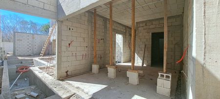 -Cochera para 2 autos sin techar, con fachada de muros de piedra y acabado chukum,