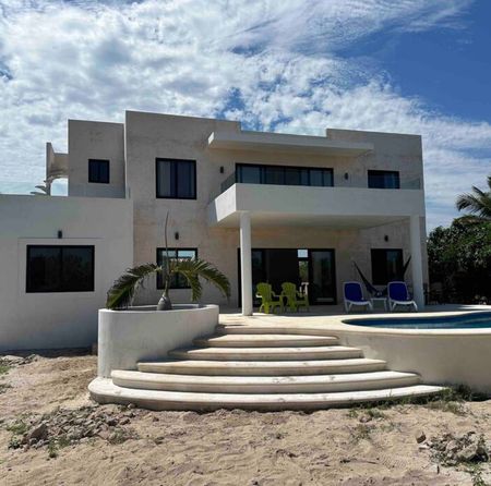Amplio terreno con casa de 3 recámaras. 3.5 baños, frente al mar en Sisal. A 9 km al oriente del pueblo.