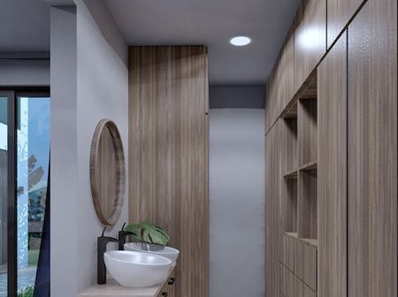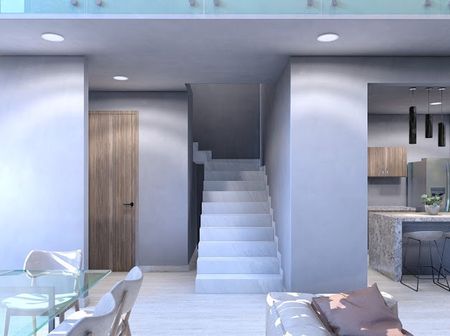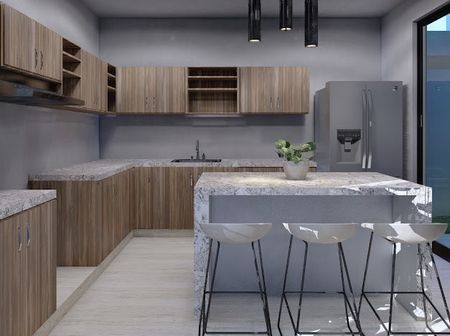• Planta Baja: Espaciosa cochera (30.45 m²), bodega y área de lavado, moderna cocina (16.42 m²), amplia sala-comedor (37.40 m²), una recámara con vestidor y baño completo, además de un asador y alberca para disfrutar de tus momentos de relajación.