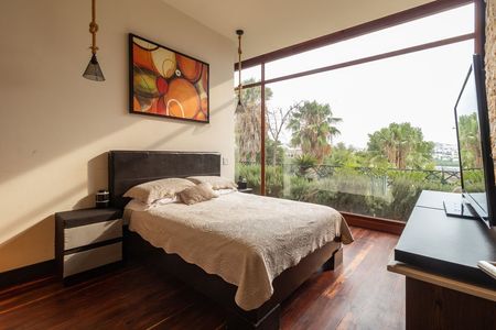Sistema inteligente en toda la casa, con 22 cámaras de vigilancia, 5 cajones de estacionamiento techados, planta de tratamiento de agua para riego, sistema de riego automático, hidroneumático, calentador solar y aire acondicionado con calefacción.