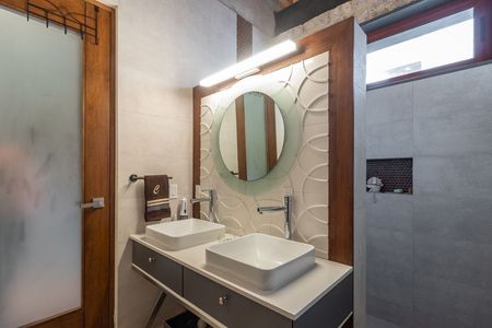 Terraza abierta con chimenea, área de servicio y baño de hombres y mujeres.