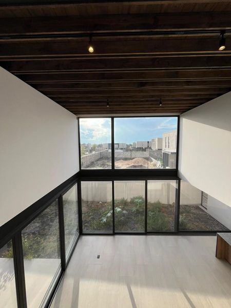 Hermosa casa contemporánea que fusiona perfecto una lista de materiales que evocan a la modernidad y vanguardia, en planta baja tiene un estudio o 4ta recámara, baño completo, cocina equipada, sala, comedor, bar, terraza, bodega y jardín.