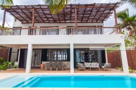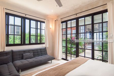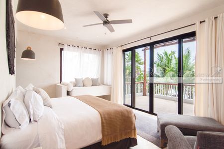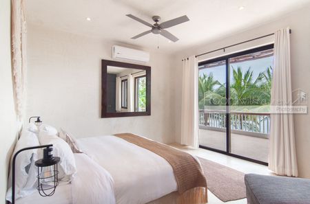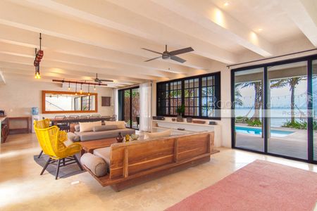 Diseñada para ofrecer un estilo de vida cómodo y elegante, esta villa de 6 habitaciones cuenta con interiores amplios y soleados, cocina totalmente equipada, y espacios abiertos que invitan a disfrutar de la brisa caribeña. Cuatro suites con camas king-size ofrecen el máximo confort, mientras que dos habitaciones adicionales, conectadas por un baño compartido, brindan espacio extra para huéspedes. La amplia terraza en la azotea ofrece vistas panorámicas al mar, y la propiedad incluye una alberca frente al mar, una casa independiente para el personal y la opción de ingresar a un programa de rentas vacacionales, convirtiéndola en una gran oportunidad de inversión.