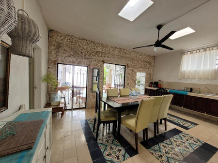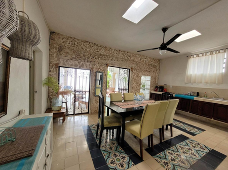 Preciosa casa estilo colonial recientemente restaurada en el Barrio de Santiago centro de Merida. Totalmente remodelada con el más exquisito gusto. Manteniendo detalles como puertas, pisos y muebles originales de cedro. Acondicionada con equipamiento y tecnología actual sin perder los detalles coloniales originales de la casa. La casa tiene muros altos y frescos, igual que aire acondicionado en todas las habitaciones.