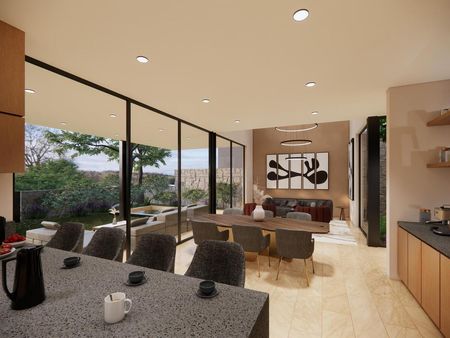 Esta impresionante propiedad, ubicada en una esquina y con una alberca privada, ofrece una construcción contemporánea a estrenar. Además, colinda con una amplia área verde en la parte posterior, brindando un entorno natural y tranquilo.