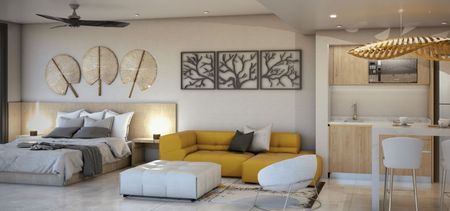 Estos nuevos estudios y penthouses son perfectos para rentas vacacionales o como tu propia casa en el paraíso. ofrecen una distribución abierta con cocina equipad, barra de desayuno, sala de estar y dormitorio separados. Todas cuentan con balcón o terraza privada. Las unidades a nivel del jardín ofrecen acceso a la piscina y los penthouses exclusivos tienen azoteas privadas con alberca, áreas de descanso y cocinas al aire libre. Este es un lugar encantador para tomar el sol o cenar al aire libre bajo las estrellas. Estos departamentos cuentan con pisos de cerámica y acabados de primera calidad que son duraderos y fáciles de mantener. Se ofrecen a la venta completamente amueblados y equipados con ventiladores de techo y aire acondicionado.