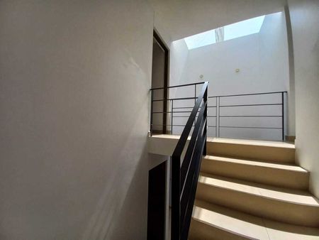 PB: Sala y comedor con ventanal hacia el jardín, medio baño, cocina equipada abierta cubierta de granito, estudio, cuarto de lavado techado, cuarto de servicio con baño completo, amplio jardín de 50 m2 con terraza techada, 2 lugares de estacionamiento techados.